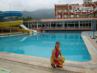 Я была с мужем в отеле с 21 по 25 мая 2013. Вид был на горы и кладбище, но это нас не смутило, т.к. ночью не слышно было музыки и гулянок. Не понравилось как убирают номера и меняют полотенца для ног, наверное ждут денег-это не правильно! Сначала сделайте свое дело, а потом, если отдыхающие пожелают нужным оставить чаевые, тогда и ждите! Основное питание было хорошим, но фрукты, особенно апельсины, наверное прошлогодние... Рекомендую ездить туда,если нет возможности взять дороже отель или как мы на несколько дней! Лежаки многие поломаны-это говорит о культуре отдыхающих! Изменили время вылета с 8.30 на 5.30-уезжали в 1.20 и выдали,как потом оказалось, ужаснейший сухой завтрак! Я бы постыдилась на месте администрации отеля такое выдавать!