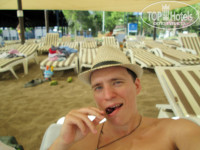 Приехал из Турции 2 дня назад, заселили в бунгало около бассейна и бара)), так как я был один, без семьи для меня это было лучшее размещение, для семьи с детьми бы не подошло (туда в общем то семьи и не селили, их селили в основной корпус) так как около бассейна с 10 играет музыка (днем с часу до 3-х вырубали музыку), а я к 10 уже на ногах), питание хорошее ни разу не отравился прочитал отзывы что не стоит брать запеканку я ее и не брал возможно она и была бы нормальной, но не рисковал, в общем питание разнообразное каждый найдет для себя по своему вкусу, давали разные фрукты, мне очень понравились грейпфруты, яблоки и апельсины, так же покупал черешню и клубнику (когда уезжал уже отошла клубника), так же можно сходить 1 раз за весь отдых в ресторан на пляже, надо заранее записаться на ресепшене (всем советую сходить!!), предлагают либо рыбу либо мясо, я взял мясо было очень вкусно, знакомые говорили взяли один мясо другая рыбу, мясо намного вкуснее рыбы. Проход до пляжа через кедровый лес, пляж песчано галечный но вход галька на суше и каменные плиты в воде, ходил купаться на соседний пляж метрах в 50 от нашего, там плавает понтон и вход хороший нет плит и вход галька с песком, вода была изумительная, купался в море как днем так и ночью)) каждую ночь ходил на дискотеку играла хорошая музыка было очень весело, особая благодарность аниматорам Жанне, Юле, Чаки, Альпу развлекали отлично, воллейбол, водное поло, настольный теннис, дарц, игры у бассейна, вечерние шоу и походы на дискотеку, детское вечерние шоу отдельно (у взрослых в это время была своя программа... в баре)) ) и где то еще был детский клуб с аниматорами, все организовывали и проводили отлично. Сходил на кофейный пилинг+ хамам+ массаж и маску на лицо отдал 40$ за все (все длилось полтора часа) загорел всего за неделю отлично, хоть и загорал в теньке, но все равно чувствовал что вот вот обгорю но так и не обгорел, возможно из-за пиллинга хотя я в этом не специалист)), начали впаривать курс массажа я отказался так как прочитал отзывы что первый раз все хорошо делают а потом тяп ляп, так что если вы может прожить без массажа стоит сходить 1 раз на пилинг хамам и массаж и на этом успокоиться, с 2-х до 3-х дня можно было ходить в турецкую баню, сходил пару раз - неплохо, туры никуда не брал так как ехал за морем и солнцем, ребята знакомые брали тур на улице по дешевке, сказали что не пожалели, хотя я считаю если брать на улице то это кот в мешке может быть все хорошо а может не очень, но каждому надо самому выбирать, было много семейных пар, но и молодежи хватало, я себе компанию нашел, в общем отдохнул отлично!!!))