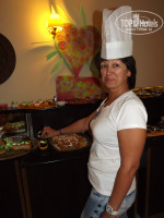 На счёт питания: сначала была одна зелень,мужчины жаловались и ходили голодными,затем стали готовить по-лучше.Утром яичница,блинчики. были овощи на гриле,индейка и вроде бы чей-то язык :) Столовых приборов не хватало,чайных ложечек никогда не видели.. Убивали пластиковые стаканчики,вечные огромные очереди за едой,толкучка.