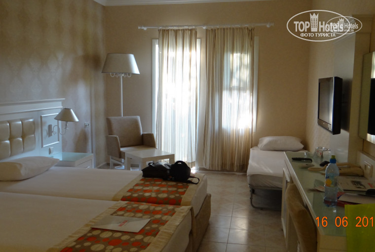 Это номер стандарт в бунгало.. На счет экскурсий: наш гид очень красиво все описывал и расхваливал.. Это понятно- его работа и соответственно его деньги.. Мы ездили в аквариум, на пиратскую яхту, также была двухдневная экскурсия в памуккале.. Везде был обман.. Например было обещано, что обед при поездке в аквариум будет в Макдональдсе, был в другом кафе.. Нам-то не принципиально, но ребенок хотел хеппи мил)) при рассказе про пиратскую яхту было обещано, что дети будут искать на острове клад, ничего не искали, ни на каком острове не были, была просто прогулки по реке с выходом в море и купанием в море.. Ну а про wi fi в автобусах Orion tours вообще смешно))