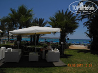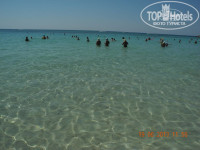 Пляж. Это самое приятное и офигенное, что там есть. От отеля буквально 50 м. Сначала немного проходишь по травке, потом выходишь на белый песок. Но! Сразу на выходе в море - камни. Поэтому мы проходили влево метров 100-200 и наслаждались песком и теплой прозрачной водичкой. Реально супер!!! Полотенца привезли с собой. Шезлонг и зонты - по 2,5 евро за штуку. Рядом с пляжем и отелем бегают небольшие ящерки, сантиметров 15-20 в длину. Прикольные, шустрые.