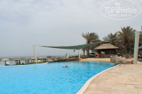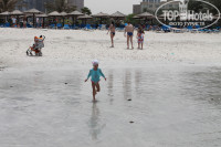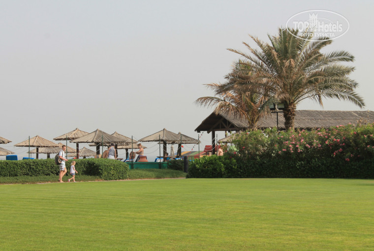 Территория отеля достаточно большая, зеленая - газончики, кустарники, пальмы - деткам есть где побегать (если актуально). Два бассейна - один судя по всему с подогревом (уж очень там теплая вода), рядом джакузи, и второй с пологим входом и двумя горками. Лежаки и там, и там всегда были. Пляж с мелким приятным песочком, достаточно чистый. Зонтики, лежаки - все есть. Вход в море пологий, при отливе у буйков можно было стоять чуть ли не по колено порой, а при приливе становилось глубоко :) На территории отеля помимо основного ресторана есть еще два за плату - Итальянский (при входе в отель) и Морской (на пляже).