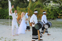 потрясающий отель,решили в нем провести медовый месяц.не пожалели.Прием был темплым ,разместились в домике на воде.Мини-бар пополнялся регулярно,кондиционер работал,насекомых не было,но сюрпризов в виде украшения постели цветами и т.д. ит.п. не наблюдали.Территория огромная и красивая,песок чистый.Для удобства брали велосипеды 5S за сутки, объехали весь остро за два дня, нашли приятный ресторанчик,который находился в центре острова среди банановой рощи,где нам предложили соки из экзотических фруктов,произрастающих на территории отеля:)) Каждый вечер на разных сторонах острова проходило кормление акул и скатов. Очень советуем не пропускать шикарное зрелище:))