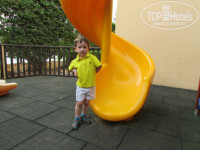 Есть детская площадка рядом с кафе горки лазелки.Мой младший оттуда не вылезал потом и сам бегал пок мы сидели в баре.