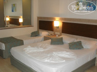 От аэропорта Анталии доехали примерно за 1ч40мин, автобусы все комфортабельные, гиды приветливые! Ресепшн работает не очень, русский язык знать не хотят! Заселение в основной корпус только в 14:00, мы с 9:00 ждали, можно заселиться в домики находящиеся на территории, но не то.... После долгого ожидания нас заселили, впечатления от номера только хорошие, очень чисто, фен, душевая кабина, кондиционер, во всех номерах балконы, уборка каждый день, все меняют, телевизор, мини - бар, воду приносят каждый день, при заселении по одной бутылке - фанта, кола, мин.вода - бесплатно, в последующие дни если нужно за деньги, но нет необходимости, т.к. на территории и на пляже все это бесплатно на разлив. Сейф в номере - 2$ в сутки, оплата при выезде, только сказать нужно сразу, что он вам нужен. Wi-fi на всей территории отеля бесплатно, интернет кафе за деньги, бильярд и др. тоже за деньги.
