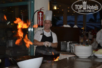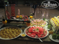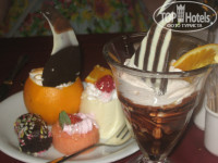 2. Питание – ну про питание здесь не раз было сказано, повторюсь, что все было супер, особенно сладкое – вообще выше всяких похвал. Единственное – однажды нам клюнуло после дискотеки поесть «ночного супа», в 2011 году «ночной суп»- был внутри основного ресторана где то стойки три с едой (без сладкого) а в 2013 году на улице – огурцы-помидоры и какой то там суп пюре – и все. Нам не критично, но кто любит поесть в час ночи, то пусть затянет поясок )))) Есть детский стол – только обед и ужин – сделан в виде паровозика в основном ресторане, пюрешка, котлетки без специй, огурцы – помидорки порезаны мелко, пицца, фри, фрукты, макароны, что то типа гуляша.
