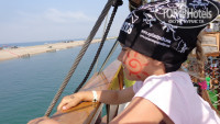 4. Экскурсии. Брали у "Пегаса" на пиратскую яхту 70$ (взр+реб до 7 лет), все круто конечно, моя была в восторге, аниматор русский развлекал, конкурсы различные, пенная дискотека (дети все просто ошалели, смешно было наблюдать), высадка на песчаную косу, поиск клада, купание в море, река Манавгат довольно холодная, но все же умыться пресной водичкой приятно. Дарят косынки пиратские, раскрашивают мордашки,остальное за деньги, татушка 10$, ножи, сабли 8$. Тут же на яхте фоткают, потом тарелочки с фото (20$), фотки (6$), я ничего не брала, ценик загнут, мы на свой хорошие фотки нащелкали))).Увезли нас в порт Сиде в 8.50, привезли в отель в 16.00. Обед на яхте как обычно и в отеле, но меньше всего, булочек для детей не было, арбузы вынесли в конце ( и то пожилые тетушки так накинулись, дети стояли в стороне, моему возмущению не было предела, аниматор-пират ситуацию живо разрулил, молодец). Предлагают конечно и Баба-тур, там и дешевле где-то 40$ на двоих, но анимация никакая, клад не ищут, косынок и раскраски нет, по крайней мере так говорят, я не стала проверять и не пожалела.
