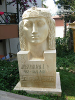 Ресторан:еда разнообразная мясо рыба птица ну и разные гарниры.Вино отвратительное.На базаре хорошее гранатовое продают по 10$.много салатов.фрукты персики абрикосы сливы яблоки,ну и арбузы.Места всегда были никогда не ждали чтоб столик освободился.Если нет свободных столиков на первом этаже на втором 100%есть.Очень вкусное мороженое а очередь за ним то есть то нету.Около столовой (ресторан)продают клубнику черешню по 5$без весов))вместо кг кладут 800 грамм.А если от отеля пройти по дороге минут 5-10 можно купить бананы по 2$черешня 3$клубника по 2.5$.