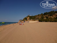 Отель расположен рядом с пляжем (хоть и не первая линия). Идти 2 минуты через подземный переход. Пляж – песочный, очень широкий, чистый. Мы все время ходили на право от отеля, ближе к маяку. Туалеты – присутствуют, а вот кабинок для переодевания я не заметила. Лежаки мы не брали. Сколько они стоят я не знаю. Загорали на огромном полотенце, купили по дороге на пляж за 20 евро. Для детей на пляже есть бесплатный батут. В первые несколько дней нашего отдыха было пасмурно, температура воздуха днем была 21-23 градуса, дул очень холодный северный ветер, вода была очень холодная ( примерно 18 градусов). Сложно было даже раздеться, не то что купаться))) Потом установилась солнечная погода, воздух прогрелся до 27 градусов, а вода - до 21-22. Заходить в воду сначала не очень приятно, но потом - привыкаешь, плавать нормально. Если вы хотите получить полноценный пляжный отдых, тем более если у вас маленькие дети – приезжайте сюда не раньше июля.