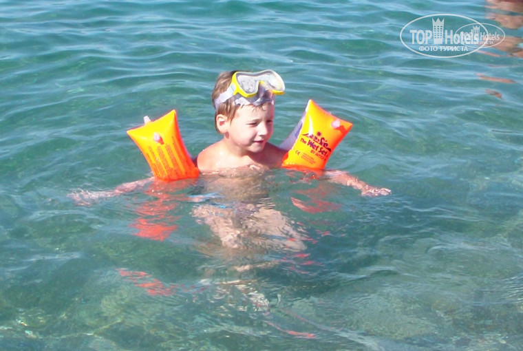 Питание: немного однообразное, не очень много мясных блюд, в основном из курицы, индейки, почти каждый день какая-нибудь рыба, но всегда можно что-то подобрать на любой вкус, много овощных блюд, сыров, большой выбор десертов, кстати очень вкусных. Чай, кофе, вода в любом количестве, напитки, плохо, что нет соков, но так во всех отелях. Каждый день фрукты в ассортименте: яблоки, апельсины, сливы, абрикосы, арбузы, дыни, виноград. У меня ребенок очень привередлив в еде, я беспокоилась, что он будет голодным, однако, и он нашел для себя блюда: на завтрак сухие шарики (6 видов) с молоком, на обед суп, картофель фри, макароны, из котлет и булочек можно сделать гамбургер, на ужин примерно тоже, что и на обед. Кстати, на пляже в кафе готовят очень вкусные лепешки с разными начинками, всегда картофель фри, овощи, гамбургеры.