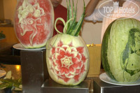 4. Питание разнообразное, даже наши привередливые в еде дети находили, что покушать и голодные не были. Детским столом не пользовались практически, только макароны брали, они там без соуса, а так они везде с добавлением соуса какого-нибудь или с сыром. Мясо: курица, говядина в различных вариантах, на гриле и тд. Рыба: жареная, тушеная, на гриле. Овощи: жареные, тушеные, на гриле. картошка в различных вариантах. Разнообразие булочек, хлеба. Сладостей: целый стол. Фруктов было очень много: слива, черешня, яблоки, персики, абрикосы, арбуз, дыня, апельсины, виноград 2-х видов, все спелое, зеленого и незрелого не видела. Соки, напитки в любом количестве везде, в барах круглосуточно вода, соки и тд. алкогольные и безалкогольные коктейли очень нравились.