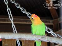 Территория отеля не очень большая, но очень ухоженная, трава, пальмовая аллея, цветочки, небольшой водопадик, 2 большие клетки с попугайчиками.