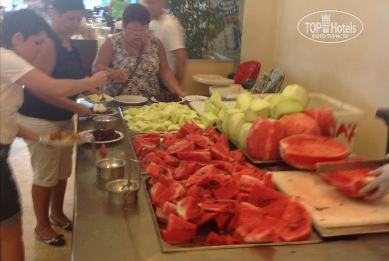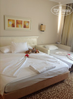 Приехали в отель 19 июня в 7 утра,номер сказали будет готов к 9 , нам одели браслеты и сказали что мы можем идти завтракать. Зайдя в ресторан глаза разбегаются от изобилия блюд,одних каш каждый день рисовая , овсяная,гречневая ( в Турции первый раз вижу гречку!!!) или манная , все несладкие так что по вкусу можно добавить как хочешь, мы любили с вареньем вишневым. Позавтракав вернулись на рецепшен номер был готов и мы пошли его смотреть это было основное здание на 6 этаже на полу светлый ламинат кровать и диванчик , который раскладывается как кровать. Решили что высоковато и попросились в бунгало на 2 этаже возле мини клуба, сказали что освободиться к 13 часам, но заселили гораздо раньше. В номере сейф платно 3$ оплатили сразу при заселении. Если хотите wifi то лучше сходите на рецепшен потому что в номере это перевод денег связи вообще нет. Это единственный минус который я нашла. Анимация СУПЕР . Детский мини клуб это рай для деток он открывается в 10 утра , к этому времени там стоит толпа деток( когда отдаешь в мини клуб ребенка то вас спрашивают можно ли ему выходить из него или нет , если нет то не вы пустят без родителя) там раскрашивают личико, проводят разные соревнования , а вечером победителям дают грамоты и медали. Мини клуб ходит обедать и завтракать отдельно от родителей. Моя доченька очень полюбила Кэт очень веселая и озорная так держать и Вику (тетя Вика три раза не повторяет).Водная гимнастика для взрослых в море и в бассейне с Юлечкой. Питание на высшем уровне . Все было: язык говяжий отварной, стейки баранины, тунец , скумбрия на гриле, морепродукты , шашлык из курицы ,филе индейки, а десерты слов нет. Мы отдыхали 16 дней как в сказке. В этот отель я обязательно вернусь не раз!!!!!!