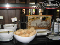 Вот чего много, так это сыров, сладостей, варенья, булочек и салатов. Иногда даже мед в сотах был на завтрак. Чая, кофе, воды - море! Но вот почему то в последние дни черного чая Липтон не было в основном ресторане, приходилось искать... И молоко в чайниках исчезло...