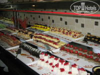 Итак, вернемся к разнообразию...Вернее, к его отсутствию. Небольшой выбор мяса, в основном курица. Из фруктов только яблоки, апельсины, абрикосы, дыни (не вкусные) и арбузы. Но есть возможность поесть сливу, персики или нетаринки, если вдруг окажетесь в ресторане на пляже во время обеда. Этих фруктов в основном ресторане не было вообще. В детском меню бывали черешня и бананы, но ведь это в детском! Почему не было черешни в разгар сезона?! Впервые столкнулась с этим.