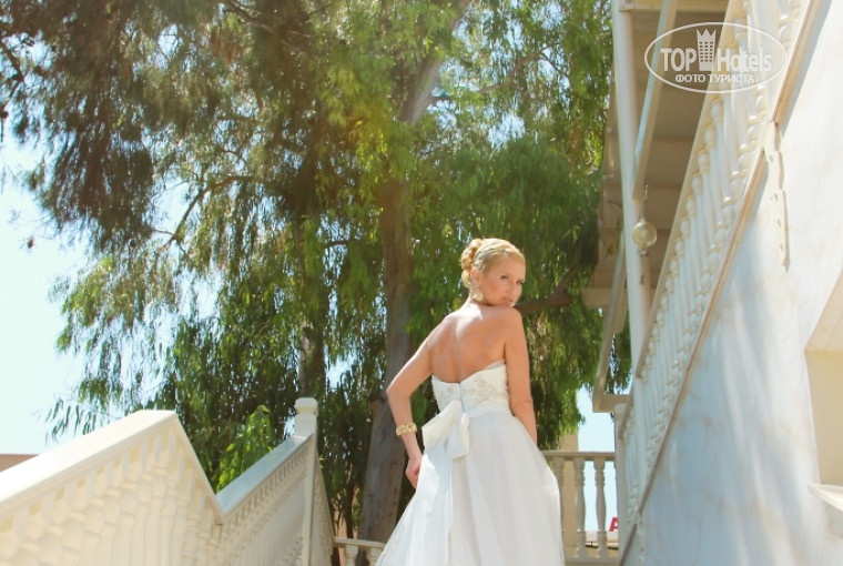 Отдыхали в отеле Потидея Палас в июне 2013 г. Выбрали его из-за архитектуры, крайне подходящей для нашей свадьбы, которую в отеле и проводили. Церемония отличная! Нежно, трогательно и не торопясь, с очень красивыми обычаями. В церемонию так же входили цветы невесте и жениху (очень красивый букет кстати, в заранее выбранной мною цветовой гамме), торт, шампанское, украшение столика для церемонии в парфеноне и подарок-небольшой сувенирчик от отеля. Повышения категории номера нам как и следовало ожидать не получилось, т.к. естественно все номера были заняты, даже просто пофотографироваться в большом номере не было возможности. Зато музинидис любезно доплатил нам за делюкс, т.к. в процессе брони стандартов они закончились, за что им спасибо большое! Делюкс тоже очень красивый! Дорогой ремонт, мебель, сантехника и прекрасный вид на море! Сама территория отеля просто сверкает чистотой и аккуратностью, хоть и не очень большая! Кормят ООООЧЕНЬ вкусно-помимо традиционных европейских блюд очень непривычно было видеть пельмени например, блины фаршированные, окрошку, супы разные, не говоря уже про морепродукты, овощи и почти все возможные фрукты и свежевыжатый сок. Вообщем повару огромное спасибо! Кормят кстати в основном ресторане и Акрополисе совершенно одинаково, очень жаль потраченных 80 евро за якобы "праздничный свадебный обед", т.к в ресторане, во время всеобщего обеда на нашем столике просто стояла карточка "Зарезервированно" и ничего более.... даже сервировки никакой, а когда я спросила официантку предлагает ли она мне в свадебном платье пойти накладывать еду самой, она любезно сообщила мне что может помочь. Как то меньше всего я представляла себя такую нарядную блуждающую в ресторанских очередях в поисках салатов. Вообщем надо было пойти в основной ресторан и точно так же бесплатно там покушать ничуть не хуже, а может даже и лучше! Ну не будем о грустном... Пляж отличный, шезлонгов куча-всем хватает, у бассейна тоже всегда достаточно+отличнейшая аннимация. Удивительно как Стефан, Арчи и Мишель всех запоминали по именам! Мы обязательно участвовали во всех мероприятиях! такие классные ребята! С детскими анниматорами к сожалению не знакома, но видно что детишки тоже почти весь день чем то заняты. В винном погребе при отеле купите обязательно Музинидивское фирменное вино красное-очень вкусное, и всем кому в подарок привозили очень понравилось! В том же магазине среди кучи сувениров продается рамка для фото в виде парфенона, я почему-то думала что именно ее на свадьбу подарят в подарок-очень символический и уж точно на память, и конечно я ее купила, она копейки кстати стоит! Цены на масло и вино тоже не высокие, так же как в дьюти фри только выбор огромный, да и карточку на провоз вина дают, вес которого не учитывается при провозе в аэропорту. Вокруг отеля инфраструктуры нет вообще! Обязательно берите багги или машину напрокат (на месте кстати значительно дешевле чем через интернет заранее) и катайтесь обязательно! Халкидики и в особенности Кассандра - сказочно красивы - красивейшие горы, леса, бухты и пляжи! Из отеля этого не увидишь! Приятного всем отдыха!!! И до новых встреч Потидея! Спасибо за прекрасный праздник!