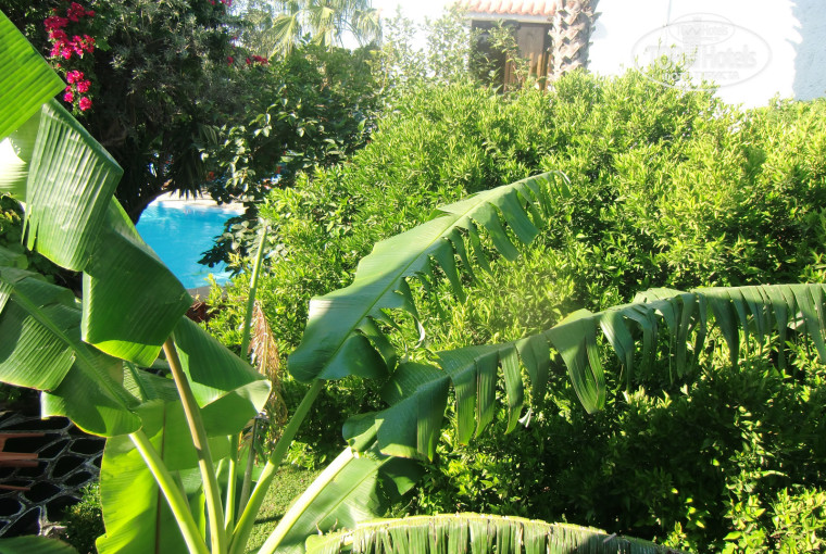 Отель- настоящий Ботанический Сад, на территории растут банановые пальмы, апельсиновые, мандариновые,лимонные деревья с созревающими плодами,гранаты,абрикосы, цветы и т.д. Каждый раз, возвращаясь в отель, мы попадали в настоящий оазис, где можно отдохнуть в тени многочисленных растений.