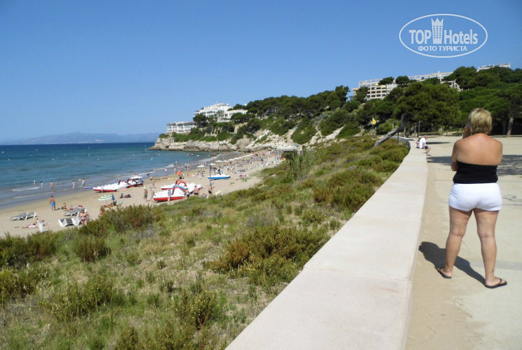 Вообще все пляжи Испании муниципальные, соответственно все лежаки и зонтики платные. От отеля идет дорожка и от нее отходят множество спусков к морю, мы же ходили на самый дальний и большой (идти туда минут 5 не более). На пляже есть душ. Имейте ввиду, что солнце там обманчиво-не обгорите в первый свой день пребывания!