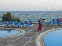 Ужин всегда довольно разнообразный. На выбор всегда есть и рыба, и мясо, и птица, морепродукты-просто в огромном количестве-это и салаты и мидии и креветки и осьминожки ))) в общем просто объедение )) Майонезных салатов практически нет. Отдельно у плиты стоит парень и при вас же жарит выбранные вами и бекон, и рыбу и котлетки. Фруктов довольно много: арбузы. дыни, бананы, черешня, ананасы, персики трех видов, сливы, нектарины. Вот на ужине напитки все платные. 1 литр воды около 2 евро. Вино, шампанское или сангрия-7-9 евро-цены вполне доступные. Причем если вы не допиваете свою бутылку вина, можете попросить официантов, они повесят на нее бирку и на следующей день вам ее же и подадут ))) практично ))