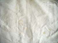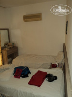 Номер тесный (примерно 10 м), 2 кровати, старенький ТВ, тумбочка, зеркало и шкаф (плечики есть). Кондиционер был, но не работал. Холодильника нет, стаканов для воды нет. О ванных уже было сказано много, так что не буду повторяться (все написанное правда). Чистота белья вызвала вопросы, полотенца были в пятнах, простыни мятые - на ресепшене нас заверили, что они чистые. В шкафу была плесень.