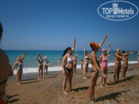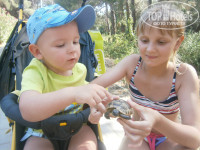 На пляже - все удобства: лежаки, матрасы, полотенца, 3 туалета, прохладный душ, бар (а днем еще и обедом кормят), 2 женщины турочки с самого утра уже лепешки пекут - вкуснятина. В 10-00 приходила ЗАМЕЧАТЕЛЬНАЯ ДЕВОЧКА-ЗАЖИГАЛОЧКА Жанна и кричала на весь пляж: "Зарядка, я пришла", тут хош или не хош поднимешь свой зад и под общую песню начинаешь двигать телесами на свежем воздухе, это было здорово. Чуть позже взрослых приглашали на волейбол, а детишек за столики либо рисовать, либо играть в UNO, либо им моськи разрисовывали. Моих детей было не оторвать от этих забав. Дорога не утомительная, по лесочку - засекали 9минут спокойным шагом.