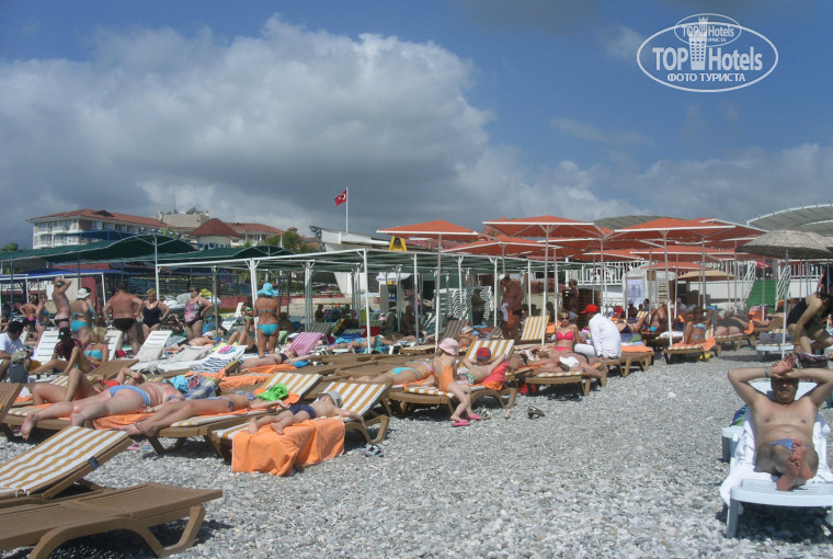 Пляж не просто маленький. Можете судить по фотографиям: пляж данного отеля - это оранжевые зонтики. Зонтики других цветов относятся к другим отелям.