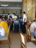 На третий день я отравился салатом с майонезом. Все ночь тошнило и пол-дня температура - 37,5. Стали есть осторожно: рис, рыбку, когда была, и зелень. Но тёща, а следом и дочка 7 лет все-таки умудрились повторить мой горький опыт. Девочка тяжело перенесла отравление, и мы пропустили экскурсию из-за этого. По рассказам местных торгашей на территории отеля - оно и не удивительно, на кухне царит полнейшая антисанитария. Очень многие люди, с которыми мы познакомились за 12 дней, жаловались на отравления. Оно и не удивительно: грязная посуда на раздаче, слой накипи в чашке, плесень на лимонах и горелые перцы (см. фото). Особенно поразила проезжающая мимо столов тележка с большим помойным ведром, воняющем пищевыми отходами, куда стряхивали объедки с тарелок! (см. фото) Вода в запечатанных бутылках, что стояла на обед на столах, пахла хлоркой. Перед завтраком, около 7 утра, стояла жуткая вонь на весь первый этаж, да такая, что некоторых тошнило прямо на пол в холле при выходе из лифта. Жаль фотоаппарат запахи не передаёт.
