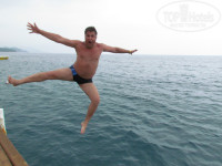 Пляж очень чистый, лежаков хватало на всех с лихвой!!! Есть пирс с которого можно попрыгать!!!