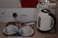 В номере все электрическое работает от ключ-карты, кондиционер регулируется по своему усмотрению. Причем, при желании, можно встать на стул и вручную поднять или опустить его шторки, чтобы дуло или не дуло на кровать. В номере чайник, две кружки, два стакана и ежедневное обновление чая, кофе и сахара.
