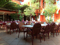 За три полных дня и три ночи заплатили по 10.000 с человека. Вылет из Питера. Разместили быстро, номер бронировали на троих, одна девочка не прилетела, на двоих дали крохотный номерок метров 8-10. Кондиционер работал исправно, холодильник не работал вовсе, с водой большая проблема...... тёплую не настроить... либо горячая, либо холодная. Питание скудное, очереди, горячее выдаёт повар. Из фруктов несладкие арбузы, резаные апельсины, один раз яблоки. Посуда моется плохо, особенно чашки. Территории почти нет, маленький бассейн возле которого тусила выпивающая молодёжь. Очень плохо убирали номер. Полы оставались грязные, мало того местью за отсутствие чаевых было лишение нас полотенца и туалетной бумаги. Пока дошли до ресепшн (а жили мы в дальнем корпусе), пока пожаловались, пока отреагировали..... прошло пол дня.... бумагу добывали сами. И всё бы это ничего если бы море было близко...... До него немногим меньше километра.... Пляж галька, вода чистая. Очень много народа, почти как на Российском юге. Довольно жарко плюс высокая влажность. В начале июля была в Египте, при том, что на 3-5 градусов было жарче, переносилось куда комфртнее. Удивили высокие цены в магазинах и наглость турков. Раньше они были куда культурнее. Теперь только в хороший отель со своим пляжем и поздней весной либо ранней осенью.
