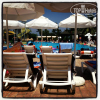 Небольшая, но красивая. Все зеленое, ухоженное. Проблем с лежаками ни на пляже, ни у бассейна не возникало, хотя многие бронировали заранее. На территории несколько гамаков, на которых можно прекрасно поваляться, небольшой, но уютный амфитеатр, где проходили основные действия анимации, прекрасный бассейн с нормальной глубиной (максимальная глубина 190 см), в который я лично, с удовольствием ныряла с разбегу. Столики в баре у бассейна и баре на пляже. Чистое, красивое море! Пляж состоял из мелкой гальки, но это не особо расстраивало - хороший массаж стоп. Волны на море очень радовали, катались на волнах и радовались как дети). Воллейбольная площадка - песочек, играть было комфортно и приятно). На территории отеля несколько магазинчиков, где можно купить фактически все для отдыха, также прекрасный магазин серебра. Купила себе там сережки - ненарадуюсь) Спасибо Таркан! (так зовут продавца)