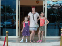 В Турцию ездили впервые, и к подбору отеля относились очень серьезно. Большую роль сыграли отзывы тех, кто уже был в этом отеле. Нас было трое взрослых, трое детей (15,12,5 лет). Привезли нас в отель в 7.00 утра. Заселение в 14.00, но мы были готовы: переоделись в купальники, сдали вещи администраторам и пошли гулять по отелю. Заселили нас около 14.00 в номер, к которому у нас абсолютно никаких претензий не было: мы не рассматривали каждую щелочку на предмет наличия неаккуратной штукатурки, т.к. приехали совсем не за этим. Очень впечатлила встреча с Рамином (представитель тураператора). Все популярно объяснил и уже после встречи было ощущение, что "большой брат смотрит за тобой". Ну а если серьезно, то создалось ощущение полной защищенности. Что касается питания, то претензий не было ни у детей, ни у взрослых: всегда был большой ассортимент фруктов, сладостей, мяса... Анимация нормальная, после вечерних развлечений часть отдыхающих уезжала на дискотеку,но так как мы были с детьми, выезжать возможности не было, а потанцевать примерно час хотелось бы. Хотелось бы разнообразия в детских развлечениях. У аниматора Алины настроение почти всегда было "не веселое" (мягко сказано). Остальные аниматоры большие молодцы: Рамчо, Рома, Уно, Оззи. Рома вообще отдельная история. Складывалось ощущение. что он знает каждого по именам, дети и подростки от него были в полном восторге. До сих пор если громко крикнешь: Ааармаас Биич, то они отвечают: УУУУУУУУ!!! И так четуре раза.