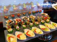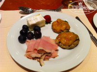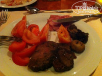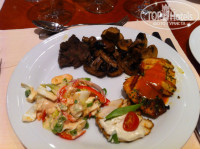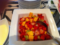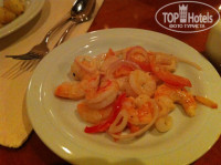 Теперь перечислю часть блюд, которые там подавались: свиные ребра (я был в шоке, пальчики оближешь), медальоны из свинины с соусом манго, свиные эскалопы, свинина запеченная в фольге, колбаса свиная жареная, рулет (типа нашей шинки), бифштексы из телятины средней прожарки, гуляш, ростбиф с белыми грибами, телятина с шампиньонами, жареные шампиньоны, равиолли с шампиньонами, рыба красная с очень вксным соусом, рыба какая то белая, тунец, скумбрия копченая, креветки, мидии, кальмары, суши (были в последний день), паста очень вкусная и соусы к ней обалденные, тушеная капуста, жареная кислая капуста, салат из редиски с зеленым луком, салат из редьки - это чать того, что сейчас вспомнил. Первый раз возвращался домой не мечтая о домашней кухне. Мой ребенок очень любит суши, подойдя к менеджеру ресторана я спросил, почему за десять дней их не разу не было - в ответ он сказал - приходите завтра на обед. Прийдя, я был в шоке - специально для сына на тарелке (70 см диаметр) на пальмовых листьях подали суши (с креветками, с семгой, с икрой, с тунцом, также на тарелке былло порезано филе тунца - все очень красиво и очень вкусно. Отель полностью пытается исполнить все Ваши пожелания. Менеджер по три раза подходит и интересуется все ли нам нравится, короче сервис и питание на высшем уровне. К слову в этот отель возят туристов из других отелей, что бы поесть за шведским столом ))) а из нашего отеля нас возят покушать в отель Армани )))