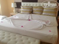 Заселили нас раньше 14 часов - муж подошёл на ресепшн, попросил и нас заселили без доплат в семейную виллу, как и было прописано. Номер чистенький, всё работает. В номере фен, тапочки, плазма с русскими каналами, wi-fi, огромная и удобная кровать для взрослых, для детей односпальная и принесли раскладушку, полотенца меняют каждый день. Удивила работа нашей горничной - она всё время приходила в разное время и это было жутко не удобно - то с утра прийдёт - мы ещё не встали, то перед обедом, когда надо после пляжа помыться и в ресторан идти, то после обеда, когда отдохнуть охота, да и уборка могла бы быть получше - поэтому 5-. Один раз не пополнили мини бар, но звонок на ресепшн и в течении 10 минут пришёл работник и всё принёс.