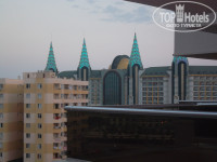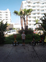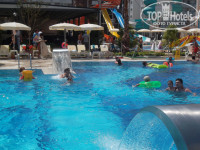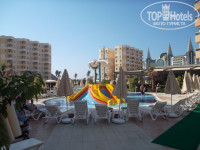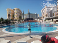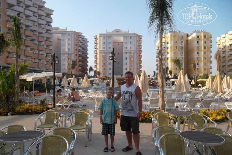 Отдыхали с 3 по 16 июля, первое впечатление было испорчено неудачным размещением, приехали в отель мы в 7 утра и после бессонной ночи в аэропорту нам предложили посидеть на диване в холле, пока не освободится номер! Я ,конечно, понимаю, что заселение у вас с 14.00, но для таких случаев можно предоставлять хотя бы временный номер, а так мы спали прямо на диванах в холле под музыку и работающие кондиционеры до 15.00!!! Конечно мы ходили и на завтрак и на обед ,но сил уже не было никаких, хотелось просто выспаться! Я не понимаю, в чем заключается работа представителя туроператора, доставившего нас только до ресепшена отеля, без подтверждения заселения в номер?! Это в тот момент очень возмутило! Затем, наконец-то нам дали номер, он был в 3 корпусе с видом на соседний корпус, в номере двухспальная кровать и односпальная для ребёнка, убирались первые два дня через день, затем мы стали оставлять по 2 лиры горничной и стало чище, постель менялась каждый день и полотенца тоже. Персонал приветливый, улыбчивый, очень любят все детей и меня это нисколько не раздражало, даже наоборот. Питание очень хорошее: на завтрак омлет, болтушка с овощами, булочки, сосиски, блинчики, картофельные крокеты, йогурт разный , варенье, каши, колбаса, сыр, стояли автоматы с соком ...всего уже и не вспомнить.. на обед 2 супа на выбор, овощные гарниры, рис, запеканки, рыба на гриле, куриные рулеты, пицца, помидоры, огурцы, перцы, разные к ним соусы, фрукты , салаты. Есть стол для здоровой пищи, там всё было варёное и овощи и мясо... Официант спрашивает, что будете пить и приносит: пиво, вино, водку, виски, ром, джин, колу, сок.Ужин всегда был самым богатым: курица, индейка, ягнёнок, картофель фри(именно за ним всегда была очередь, но небольшая из 5 человек не больше), мясные рулеты, пельмени турецкие, шашлычки, закуски, салаты из мидий, креветок, кальмаров, сыры. Потом вынесли на улице жаровню и стали готовить шаверму из баранины и лепёшки с мясом острые (забыла как называются). Из фруктов арбузы, дыни, нектарины, персики, абрикосы, виноград, черешня и конечно сладкое, огромный ассортимент пирожных и десертов, всего не попробуешь... На пляж каждые 10-15 минут ходил большой автобус с кондиционером, хотя и дойти до него не далеко совсем, метров 200 наверное, нужно перейти дорогу и по прямой от отеля. На пляже есть кафе, где всегда можно перекусить- пиццу, салаты, фрукты, соки, пиво.. если немного подождать, можно под заказ взять курицу, картофель фри. Пляж-песочек с галькой, при входе даёшь карточки -получаешь чистые полотенца, уходишь-наоборот.. Песок чистый-ходят молодые люди, убираются, один тарелки в кафе, другой- мусор.Зонтиков и тентов хватает на всех свободно, мне кажется, на бассейне у отеля народа больше было. Ещё на пляже при входе пекут лепёшки - гезлеме, но там надо подождать,всегда очередь.. Ещё одна особенность в этом отеле-мало русских туристов, в основном, были немцы, голландцы, англичане; когда мы приехали, потом стало больше турков, поэтому в отеле всё тихо и пристойно, "тагила"точно нет! У бассейна тоже есть бар с напитками, тоже получаешь полотенца -потом сдаёшь, вода чистая, анимация была такая: аквааэробика, волейбол, игры командные возле пляжного ресторана. Несколько раз мы ездили до торгового центра Терра Сити на автобусе 07 ,минут 15 езды. Автобусы все с кондиционерами поэтому жары особой не было. Если оп