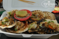 Питание: сначала ходили каждый раз в новое кафе/ресторан, потом стали ходить недалеко от отеля (как выйдете из отеля, налево немного пройти) кафешка "У мадам Кук" (по моему так называлось). Очень уютно, вкусно, по домашнему, много зелени, бансаи, птички в клетках, доброжелательный персонал. У официанта была ручная маленькая белка, детишки все в восторге. Если немного пройти в сторону центра будет ресторан "У Захара" (про него много отзывов в инете). Хозяин Захар сам подходит, знакомится, отлично говорит по русски. Жил много лет в Баку, поэтому в меню присутствуют свиной шашлык "Огни Баку" и одноименный салат. :) Очень приветливый, так же у него можно купить экскурсии. Всегда от ресторана приносят комплимент (фрукты или зелёный чай). Всё не дорого и вкусно. На противоположной стороне есть тур.фирма "Чайка". Там работает вьетнамец Костя и украинец Вова (про него тоже много отзывов). У них можно купить экскурсии, чай, кофе, фрукты в дорогу, просто оставляете список необходимых фруктов (всё упакуют в корзинки, у нас получилось дешевле, чем на рынке). Вообще, поесть много где есть, всё очень дёшево, на четверых с соками, алкоголем просто объесться выходило рублей 500-700. Самый дорогой счёт был в ресторане "Родина" с экзотикой - 1300. На пляже постоянно заказывали гребешки, креветки, крабы, кальмары. Готовят при вас, хотите на гриле, хотите отварят. Цены копеечные. Фрукты покупали на рынке (метров 700 в сторону центра) или в магазинчиках - цены по доллару за кг.