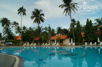 Вообще, территория отеля очень зелёная, везде растут орхидеи, лотосы, всё чисто, красиво подстрижено, постоянно поливают, чистят, подметают. Растут кокосы, манго. Напротив нашего номера (№311) живут два крокодила, курочки, петух, который каждое утро пытался нас будить. ))) Бассейн достаточно большой с джакузи, купаться можно до 22 часов. Купались в нём редко, в основном были на море, хлорки не почувствовала вообще. Полотенца выдают рядом с бассейном, просто называли номер и расписывались, когда сдавали.