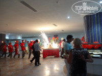 Питание. В главном ресторане всегда очень много свободных столиков. Приходили в любое время, место всегда было. Питание отличное - мясо, рыба, шашлык, фрукты, овощи , сладости, все в огромных количествах, всего всегда хватало. На завтраки – йогурты , несколько видов омлета и яичницы, оладушки, сыры, сухие завтраки, молоко холодное и горячее, какая-нибудь каша, арбузы , дыни , персики, зелень, чай и автоматы с горячими и холодными напитками , а так же рахат-лукум 5-ти разных видов. Обедать можно было как в основном ресторане, так и в снек-баре на улице возле пляжа. Мест всегда было много и там и там. Мы обедали всегда только возле пляжа. Не надо ходить переодеваться в номер, можно прям в купальнике. Выбор блюд почти одинаков. Только на улице не было супов и сладостей. Фрукты, зелень, гарниры, мясо всего было навалом. Ужины уже много раз описывали ниже, повторяться не будем ,выбор блюд разнообразен. Все вкусно. Понравилось, что на каждом столике всегда стояла корзинка с набором вилок и ножей, эти приборы не надо было искать в случае уноса официантами.
