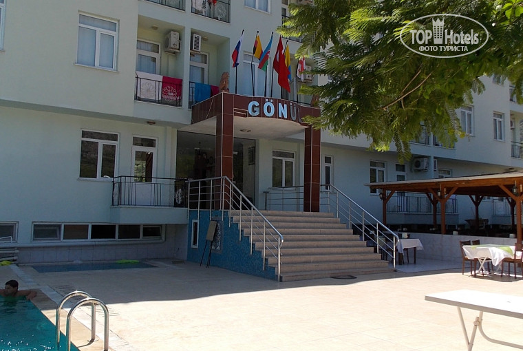 Ездили в 2 с подругой и находились в Турции с 17 по 27 июля. отдохнули на все 100 %. были проблемы небольшие с заселением, провели первую ночь в другом отеле, т.к. в Gonul наш номер оказался на эту ночь занят. ночевали в соседнем отеле Acacia. нисколько не разочаровались, что вернулись в Gonul. мы остались довольны и персоналом и отелем. со всеми вопросами обращались на ресепшен к администратору и никаких проблем не было. номер был с видом на горы, хоть и на 5 этаже, но вид с балкона шикарный. состояние номера неплохое, работающий кондиционер, телевизор (хоть и старенький, не плазма) показывал нормально. времени телевизор смотреть и сидеть в номере не было. мы поехали отдыхать и получать удовольствие от отдыха - все это было исполнено нами в полной мере. ездили на различные экскурсии практически через день, времени скучать не было. за 10 дней только 2 провели в отеле, т.к. уставали от поездок и это время проводили у бассейна. время проводили очень весело, не скучали, были замечательные люди, с которыми познакомили там в отеле же, это были люди разных возрастов и было здорово просто общаться. до моря от отеля 8-10 минут ходьбы.