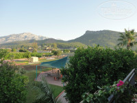 Территория просто супер!!!!!!! Все кругом в зелени....кролики бегают....безумно прекрасный вид на горы!!!!! Большой бассейн и маленький для деток...водные горки....мини-клуб ( меня выручал)))) моему сыну нравилось )....детская площадка...даже тренажеры есть на улице под тентом