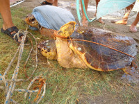 Просим всех гостей сохранять спокойствие, данные черепахи были выловлены специальной службой, и были вывезенны в реалебетационный центр в город Мула. Эти морские пресмыкающиеся находятся в списке исчезающих животных.