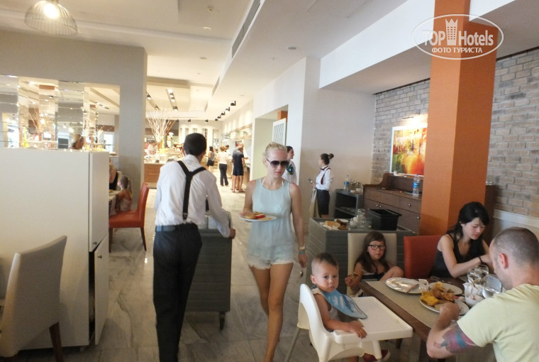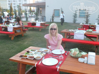 Приехали в отель около 10 утра, а заселение как написано на сайте с 14 часов. Думали, что придется где-то ждать и т.д. Но к нашему удивлению нас пригласили уже через полчаса, и как ни странно даже извинились за то, что пришлось ждать (около 30 мин.). Нам помог наш "друг" с ресепшена Мустафа (замечательный парень), мы побросали вещи и пошли купаться. Вобщем первое наше впечатление просто замечательное!