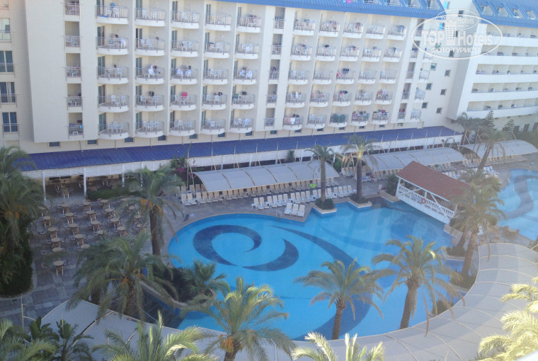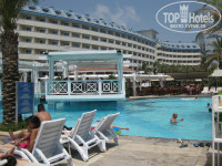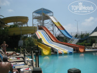 Территория не очень большая, большую часть занимает здание отеля. Очень ухоженная, зеленая. Бассейны - релакс, активный (где проводится анимация), мини-аквапарк (4 взрослых горки, 3 или 4 детские; работают по часам с 10 до 12, с 14 до 17; большая взрослая горка с кругами работает меньше указанного времени). Лежаков с утра много, в 9-10 часов можно найти без проблем. После обеда сложнее, но возможно. До моря ведет подземный переход, затем 20 ступенек вверх. Лежаков на пляже было всегда много, и утром, и днем, и в тени, и на солнце. Заход в море, лично для меня, номальный, во всех отелях Алании, в которых я была, примерно такой же. Многие пишут, что в Сиде другие пляжи (песчаные), может быть, не спорю. В море надут батут и горки. Предлагают водные виды спорта - парашют, банан, водный мотоцикл.