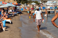 До городского пляжа идти минут 5, через дорогу. Там много кораблей, людно и шумно. Представители местных кафешек вынуждают сделать заказ из меню, если нет, настоятельно просят уйти. Чтобы быть на этом пляже нужно обязательно у них что-то купить, хоть бутылку воды.
