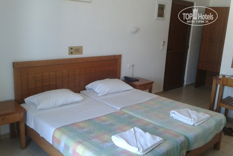 Отель нам сразу приглянулся, расположен в тихом месте, уютный. Заселили нас моментально, забрали паспорта, чтобы не грузить нас формальностями с регистрацией, дали ключ от нашего номера (527), пульт от кондиционера и ключ от сейфа (сейф платный, стоит 10 евро за неделю), надели на нас браслеты, рассказали, во сколько работает ресторан, бар, показали как пройти до номера и мы пошли размещаться. Номер нам понравился, за такие деньги очень неплохо. Конечно, обстановка простоватая, но в номере чисто, кровати удобные, подушки тоже (в прошлую поездку, когда жили в Iberostar Hermes, не мог нормально уснуть из-за дубового матраса и низкой подушки), все исправно работало. Кондиционер LG отлично охлаждал комнату и не сильно шумел, холодильник беспрекословно выполнял свою работу по охлаждению воды, купленной в супермаркете, телевизор, хоть и маленький, но работал исправно и показывал нашу РТР Планету, громкость на нем тоже была нормальная (привет Iberostar'у!). А главное, ничего нигде не отваливалось и не скрипело (снова привет Iberostar'у!). Свет и кондиционер включается после того, как вставите железный брелок от ключа в ячейку, так что оставить кондиционер, уходя из номера, не получится. Но, в принципе, это не проблема, как я уже говорил, кондер хорошо и быстро охлаждает номер. В номере имелся довольно просторный балкон, на котором стояло два стула и столик, кстати, странно, в нашем номере не было сушилки, на соседних балконах сушилка была, конечно, развешивать полотенца сушиться на стулья не было проблемой, но с ней было бы как-то поудобнее. Полотенца в отеле платные, сколько стоят не спросил, у нас были свои. Вид с балкона приятный, видно море и соседние корпуса отеля. В номере была мини-кухня, зачем она нужна, так и не понял, никакой посуды и приборов в ящиках не было, но тем не менее, опять же все работало, специально проверил ради интереса, и вытяжка, и плита. Есть довольно большой шкаф с вешалками в достаточном количестве, в шкафу же стоит и сейф, который закрывается на ключ. Ключ от сейфа остается всегда с вами, а вот ключ от комнаты, чтобы с ним не таскаться, можно оставить на ресепшене, когда уходите из отеля, например, на пляж. У нас было три кровати в номере, но т. к. были вдвоем, третья кровать нам была не нужна и мы ее использовали для складирования вещей, вообще это я на заметку тем, кто едет втроем, номера с полноценными тремя кроватями у них имеются, факт. Убираются в номере ежедневно, вполне неплохо, смена полотенец раз в два дня, белье за те три дня, что мы проживали в номере, нам не меняли, ну и ладно, как будто мы дома меняем постельное белье каждый день. Оставляли два дня подряд 2 евро горничной, но она их так и не взяла. Wi-Fi в отеле бесплатный, ловит на ресепшене и в снэк-баре, скорость нормальная, но все дни, что мы были, были какие-то проблемы с подключением.