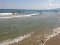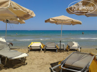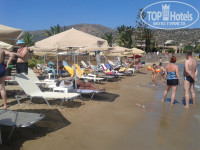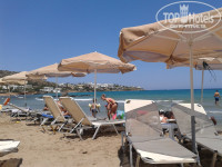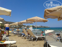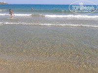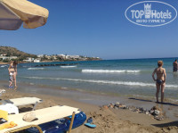 Это то, ради чего мы, собственно, и приехали. У отеля есть свой понтон, с которого можно заходить в воду. Лежаки около бассейна бесплатные. Можно лежа около бассейна рядом с баром, и изредка спускаясь к морю, заходить в воду с понтона и таким образом проводить свой отдых, но мы же предпочли ходить на песчаный пляж, который начинается около отеля Blue Sea Village Resort & Spa (2 лежака и 1 зонтик - 6 евро), идти до него порядка 10 минут или 750 метров, судя по Гугл.Картам, по замечательному тихому променаду вдоль моря, который позже перетекает в не менее тихую улицу Сталиды, вообще, эта самая замечательная дорога до пляжа, из тех, что я видел. Идти эти 750 метров одно удовольствие. А пляж, пляж замечательный! Ну как это может сравниться с деревянно-металлическим строением на камнях около отеля, никак не пойму. Мелкий, бархатный, золотистый песочек, прозрачнейшее теплое море, да, это сказка! Пляж в этом месте очень уютный, узенький (не люблю широченные пляжи). Накупались за 4 дня вдоволь. В общем, словами не передать!