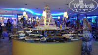 3. Рестораны. Главный. Вкусно сытно. Голодным не останешься, сядешь всегда. Баранина приготовленная в нескольких вариантах, Говядина, телятина, язык, печень, сердце, курица, индейка, рыба (особенно нравилось соте из море продуктов (креветки, мидии, кальмары) белок для мужчин полезен!!! эффект не заставляет себя ждать), овощи, сладкое, раз в неделю рахат лукум бесплатно!, на утро свеже выжатые соки яйцо, омлеты, сосиски, блинчики, пончики все не перечесть. Есть детские кресла для карапузов. В детском углу стоят маленькие столики стулья, Телевизор на котором транслируются мультики. Детское меню откровенно не понравилось, картошка та же, супы те же, все то же, что и у взрослых за исключением пюре из брокколи, цветной капусты и моркови (наш эту гадость не ел, уплетал сосиски молоко и т.д.) Фрукты не вставили. виноград какой то кислый, дыня не понял вообще что это такое. Арбузы как попадешь. Сладкие были не всегда. У нас в Сибири во много раз фрукты лучше! Персонал главного ресторана приветлив, добр, все делают быстро. Ресторан возле основного бассейна гамбургеры, пицца, сосиски в тесте и т.д. Ресторан Возле пляжа был там один раз. Там часть меню основного ресторана.