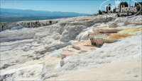 Теперь про сам отдых. Анталья - город уникальный, там есть столько всего, что за одну поездку посетить сложно. Пегасовский гид со своими экскурсиями был сразу же отправлен далеко и надолго. В первый же день нашел сайт самого известного "уличного" туроператора "Ginza Travel", позвонил туда, мне нашли русскоговорящего человека, через которого я забронировал экскурсию на Паммукале. Сравните цены - у "Пегаса" - 70 баксов с носа, у "Гинзы" - 40. Экскурсия длительная, тяжелая, но оно того стоит. Помимо 3-х стильных и качественных кожаных курток (450 долларов), текстиля и трех бутылок фруктового вина из шелковицы - масса ярких впечатлений от греко-римских руин, бассейна Клеопатры и, конечно, самого "хлопкового замка" гарантированы. Именно на этой экскурсии - самый выгодный и качественный шопинг (кожа и текстиль на государственных фабриках).