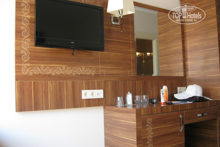 Отель, просто чудо! Сказка! Рай для влюбленных!!! Никаких проблем, никаких толп русских, очень мало детей. Сразу скажу – отзыв не заказной (можете найти меня вконтакте Шенделева Ольга). В Турции мы впервые. Но Европу посещаем постоянно,. т.к. мы из Калининграда. Сервис здесь на высоте. Номера супер, да весь отель супер! Ремонт новейший, кондиционеры везде и в полном порядке. Белье, полотенца, шампуни, вай фай, да здесь все в полном порядке. Вода и бассейн чистейшие. Я работаю в интернете, и отзывов начиталась столько (особенно про большие отели, где «весь тагил у тебя над головой «), волосы на голове шевелились от ужаса. За неделю перелопачивания всей информации выбрали 2 отеля в Турции и Тунисе. Пока ехали за билетами, их уже разобрали. Спасибо оператору Юлии из турфирмы «Магазин горящих путевок», она на месте посоветовала нам этот отель. Мы посмотрели отзывы и купили сразу. Результат превзошел все ожидания! Перелет – супер. Трансфер – супер. Отель – супер. Всем спасибо! Никаких денег не давали. Номер – прелесть. В отеле тишина. Музыка в баре – в самый раз – джаз, качественный лаундж, в общем в стиле радио «Монте карло». Этот момент порадовал особенно. Еда приличная. Я заморачиваюсь по вопросам питания. Для меня это самое главное. Разнообразный завтрак на все вкусы и пристрастия. Обед как и надо, с супом. Разнообразный. Легкий вкусный. Множество овощей, заправок. Салатов и моих любимых баклажанов. Есть и картошка и макароны и рис. Если кому нужно. Напитки юппи, вода. Пепси. Чай, кофе из аппарата. Алкоголь местный стандартный + розовое вино. Но качество отменное – при нас проверка приходила, тестировали алкоголь какими-то специальными штуками в таблетках. Джин, водка, пиво. Вин. За деньки ром. Махито. Пинокалада и т.п. Сейф платный. Вай фай бесплатный. Я не знаю, откуда вообще берутся негативные отзывы. Я В РАЮ!!!! Мне не нужна анимация, супердвижуха и т.п. Мне не 15, а 32. Я хочу отдохнуть от доолбежки и толпы. Это именно здесь и есть. До моря 5 минут медленным шагом по колоритным улочкам. Те отели, что стоят на первой линии, находятся у самой основной дороги, т.е. ваш бассейн и окна выходят прямо на нее. Крутяк?