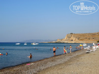 -Отель расположен в бухте Lardos bay по дороге между деревней Пефки и городком Лардосом. Море-изумительно, пляж песчано-галечный, поэтому море чистое и прозрачное. Особенности моря-глубина начинается почти сразу, так что следите за детьми. Ходьба по мелкой гальке не напрягает, хотя нашим изнеженным городским ножкам сначала и непривычно. Пляж песчаный, лежаков хватает. Лежаки старые, первая линия с утра занята полотенцами. Мы этим вопросом не заморачивались и ходили в море с лежаков от бассейнов. Есть душ. Несмотря на наличие урн, в песке много окурков, только вот стыдно за это должно быть не отелю а нам с вами!
